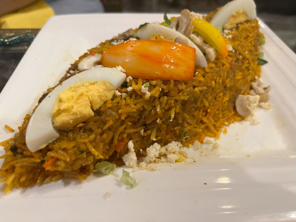 ビリヤニはパラパラで香味よくしっかり味付けされたバスティマスライス。カレーに合わせてもいい具合ですがもちろん単品でもいけますね。