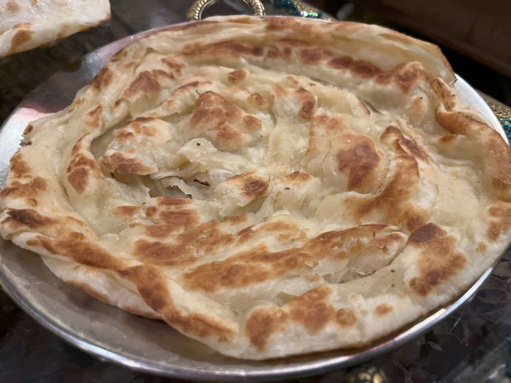 ナンに食べ飽きちゃったという贅沢さんは同じ値段のパラータを選んでもいいでしょうね。サクサクな歯ごたえながらぎゅっと生地が詰まった感じの食べでがあるパンです。