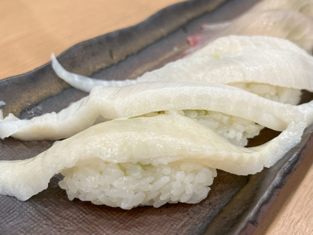 今日唯一おすすめで注文できたシロギス。天ぷらダネとしての方が通りの良いキスですが、大型はこのようにお寿司や刺し身でもいけます。あっさりしてますがブリっとした食感が楽しめます。