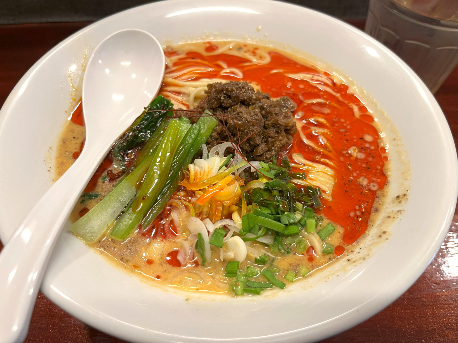 スープは芝麻醤の濃厚なゴマペーストと花椒の香り漂いややあっさりめ、辛さは少しというところ。辛さと痺れはそれぞれカスタマイズ可能です。