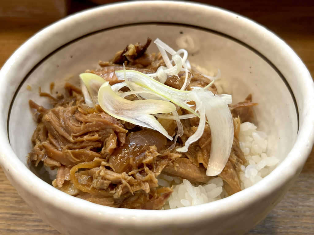 バラチャーシュー丼は添え物感のある存在と思うなかれ、ぜひレンゲでスープと合わせて食べてみてほしい。醤油をよく吸った豚と「引き立て上手」のスープの組み合わせは得も言われぬラーメンライスに大化け。