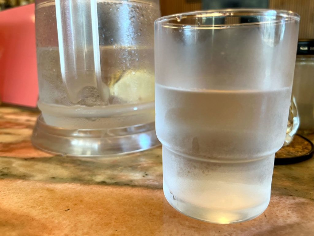 お冷はレモン水。いいですよねレモン水。ソレだけで嬉しくなりますこの昭和的サービス精神。