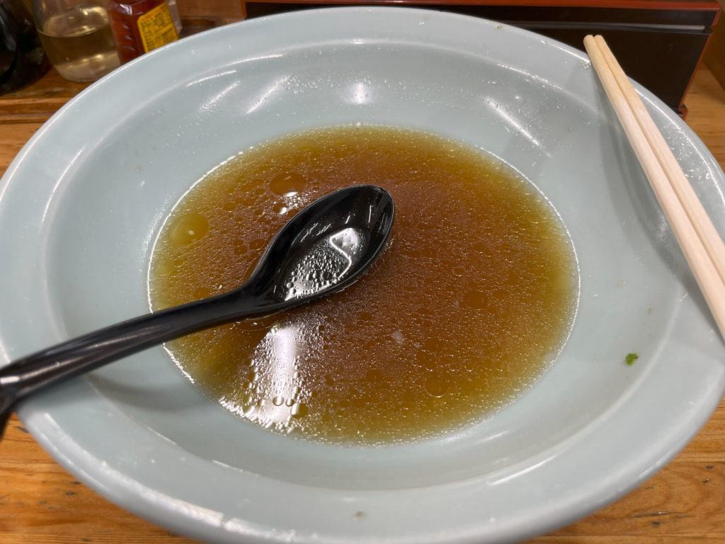 そして真打ち登場です。チャーシュー。特別感はない何の変哲もないバラチャーシューの趣きなんですが、さくさくとした謎の歯ごたえで、噛むとじゅわっと肉の旨味と風味が広がるんですね。このチャーシューとふにゃふにゃ麺を組み合わせてスープに絡めると、見た目からは想像できない信じられない美味しさに大化けするという、な、なんなんだ、いったい何を食べさせられているんだ、でも美味しい……という幸せ不思議モードに突入するのです。このラーメン、うめえー。
