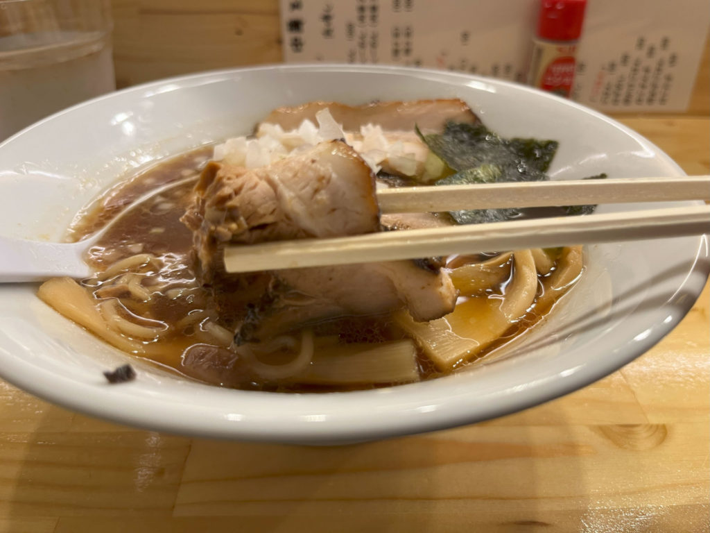 具材のうち海苔とタマネギは味変役の薬味ですが、ある意味品格のあるスープの香りを殺すので、味変と理解して楽しむといいでしょう。